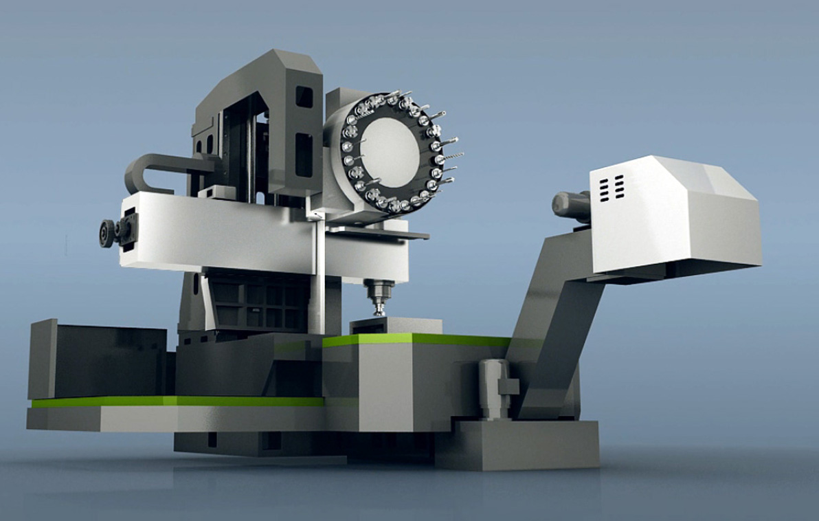 2、圓盤式刀庫布置在主軸左側;