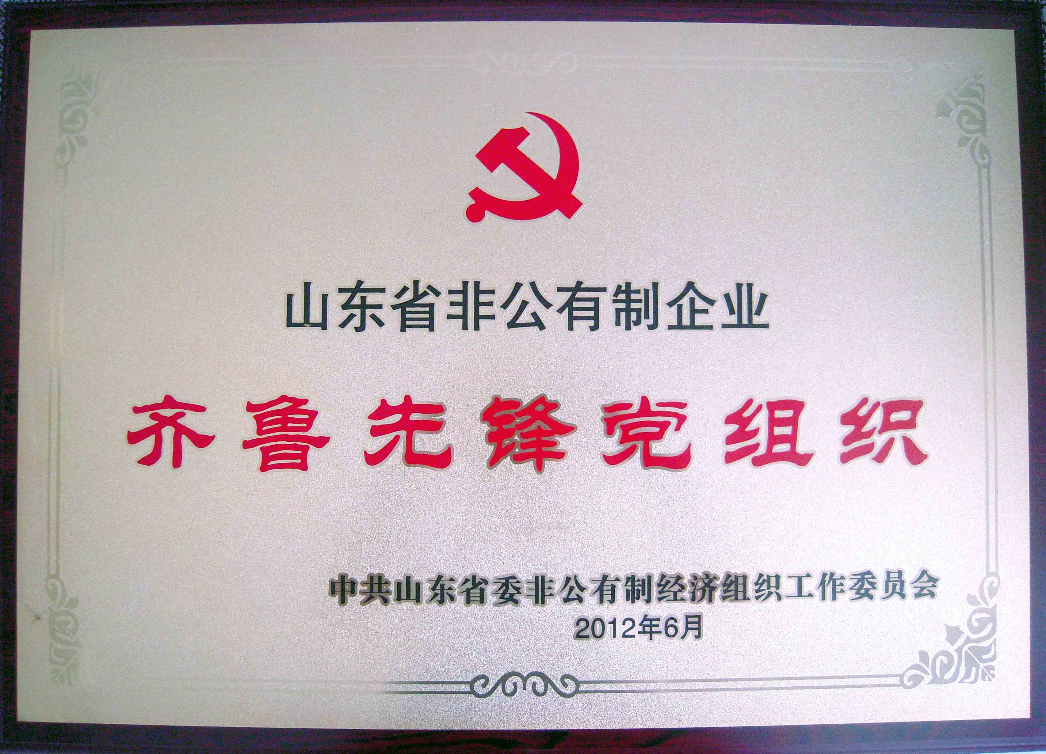 公司黨總支榮獲“山東省非(fēi)公有製企業齊魯先(xiān)鋒黨組織”稱號
