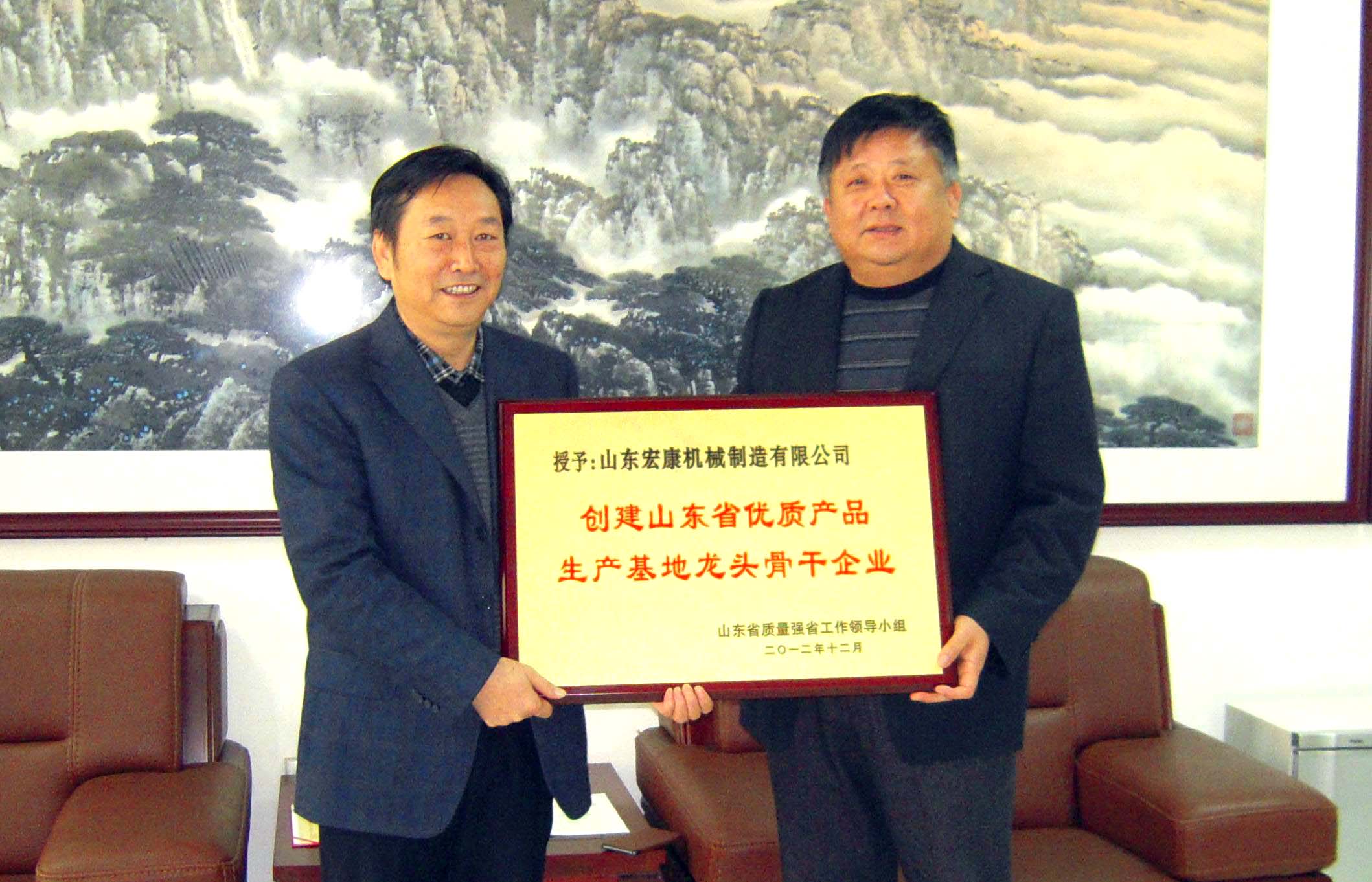 近日(rì),山東省(shěng)質量興省領導小組下發魯質強發【2012】2號文件《關於表彰2012年創建山東省優質產品生產基地及龍頭骨幹企業的通(tōng)知》,巨爆乳中文字幕爆乳区榜上有名(míng),喜獲2012年“創建(jiàn)山東省優質產品生產基地龍頭骨幹企業”榮譽稱號。圖為(wéi)1月30日(rì)岱嶽區質監局局長張複田向集團董事長、總經理康鳳明(míng)頒發榮譽牌匾。
