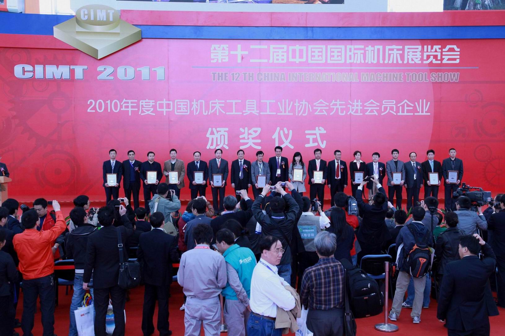 4月11日,2010年度中國機床工具(jù)工業協會先進會員企業頒獎儀式在北京第(dì)十二屆中國國際機床展覽(lǎn)會(CIMT2011)上舉行,受董事長、總經理康鳳明委托,常務(wù)副總經理潘憲平代表公司參加(jiā)了頒獎儀式(shì)並上台領(lǐng)獎。