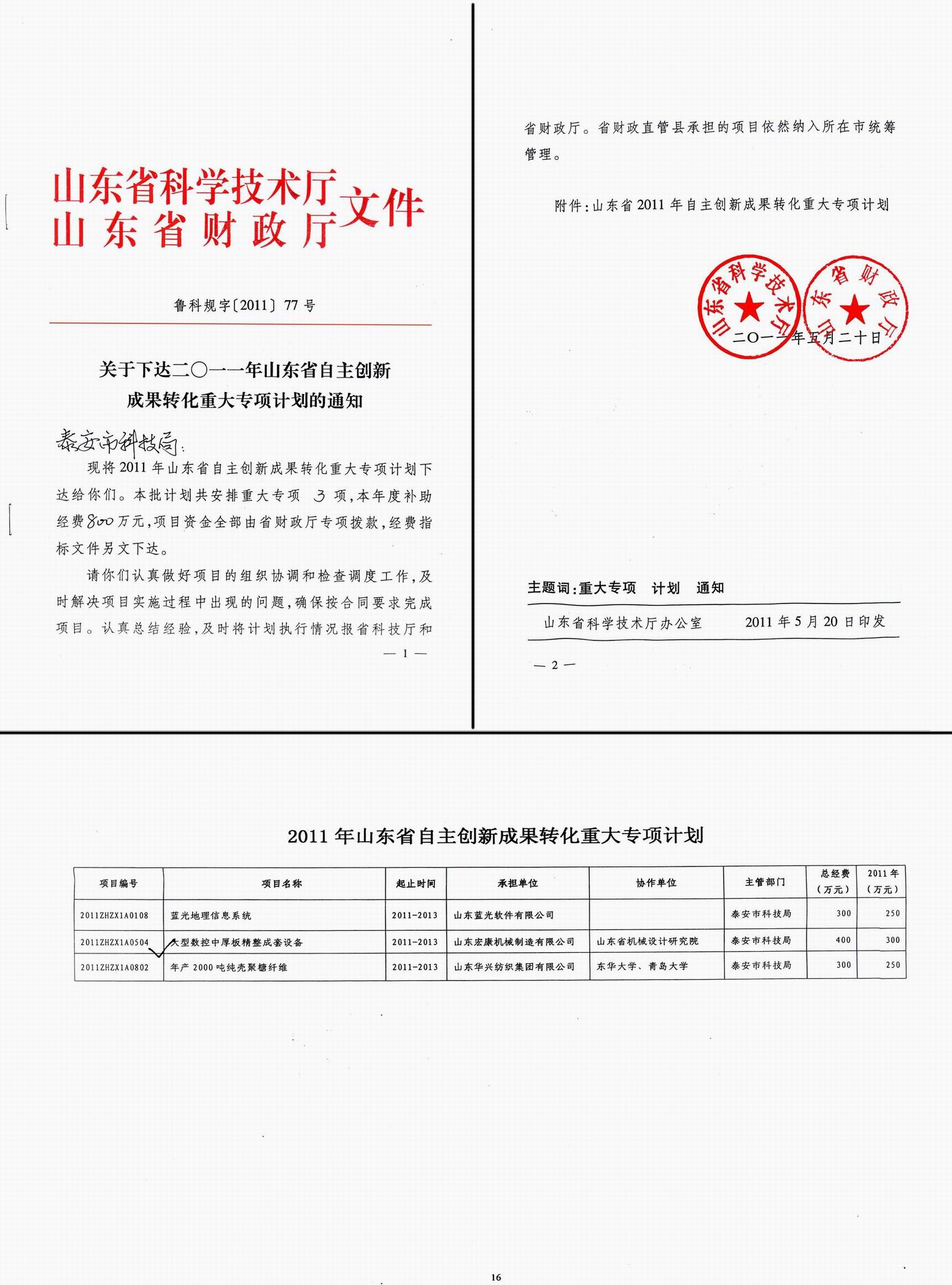 經區、市兩級科技(jì)主管部門推薦,省(shěng)科(kē)技廳組織專家評審(shěn)和研究,我公司“大型數(shù)控(kòng)中厚板精整成(chéng)套設備產業化(huà)項目”從眾多備選項目中脫穎而出,被列入2011年山東省自主創新成果轉化重大專項計劃,並獲得省政府400萬元無償資(zī)金扶(fú)持。