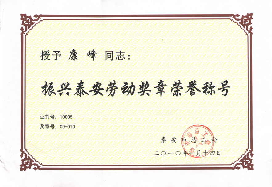 1月14日,市總工會召開十三屆三次全委(擴大)會議,會議回顧總結了去(qù)年工作,研究部(bù)署確定了今(jīn)年工(gōng)作目標。同時隆重(chóng)表彰做出優(yōu)異成(chéng)績(jì)的先進集單位和先進個人。公司被市創建勞動關(guān)係和諧企業活動領導小組授予“泰安市AAA級(市級)勞(láo)動(dòng)關係和諧企業”稱號,裝配分(fèn)廠被市總工會授予“泰安市工人先鋒號”榮譽稱號,公司副總經理朱洪臣、康峰分別被授予振興泰(tài)安勞動獎(jiǎng)章。副總經理朱洪臣參加(jiā)會議並上台(tái)領獎。