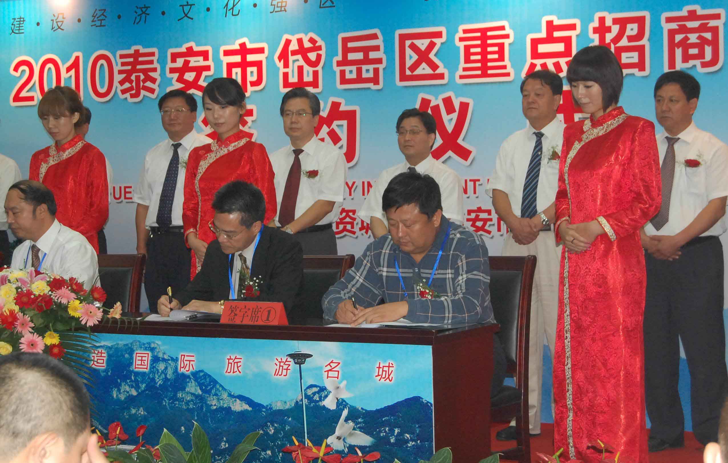 9月7日,2010泰安市岱嶽區重點招(zhāo)商項目簽約儀式在區(qū)政大樓舉行,圖為公司(sī)董事長、總經理(lǐ)康鳳明與日本住倉機械(xiè)株式會社社長紀明嶽簽署有關合作協議。